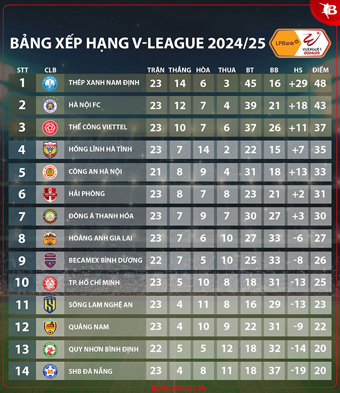 Đồng nghĩa, Nam Định chỉ cần thêm 4 điểm là chắc chắn vô địch V.League, bất chấp Hà Nội có thắng tuyệt đối 3 trận còn lại. Lúc bấy giờ, đôi bên sẽ có cùng 52 điểm. Nam Định vẫn xếp trên Hà Nội nhờ chỉ số phụ liên quan tới đối đầu trực tiếp.